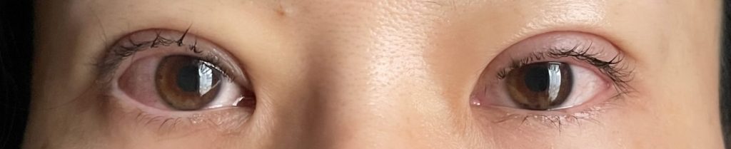 眼瞼下垂のせいで目を開ける力が弱く、目を開けるためにおでこやまゆげあたりの筋肉を変に使っていたので、それがなくなったことにより、おでこのシワや頭痛・肩こりが改善されました。