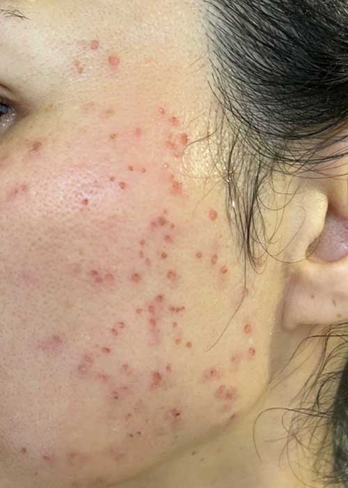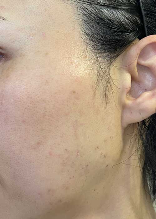 ほぼカサブタが取れぴんく色の肌が見えています。カサブタがとれ肌が敏感な状態なのでここからさらにUVケアをしっかりしていきます。